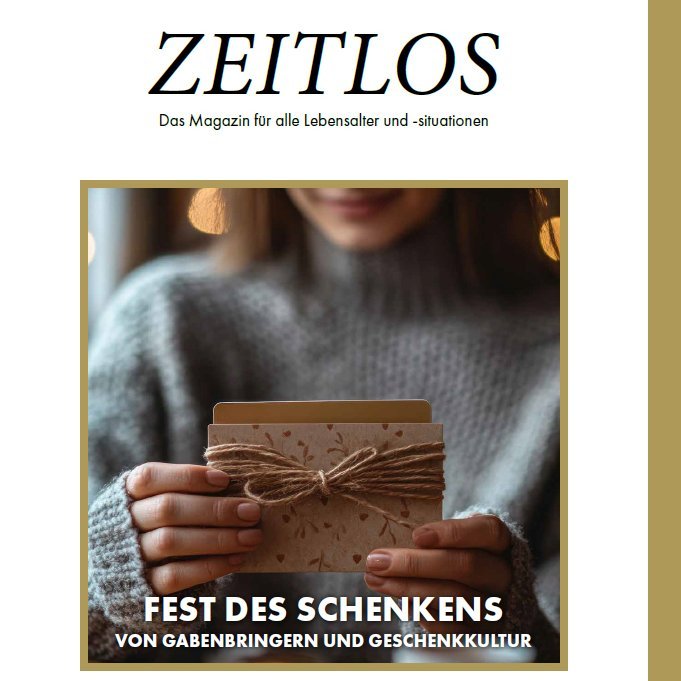 Die aktuelle Ausgabe der Aeternitas-Vereinszeitschrift "Zeitlos" berichtet über die Geschichte des Schenkens. Weitere Artikel widmen sich unter anderem einem Grabfeld für Sternenkinder, dem Musiker Phil Collins und dem Winterspektakel Nordlichter.